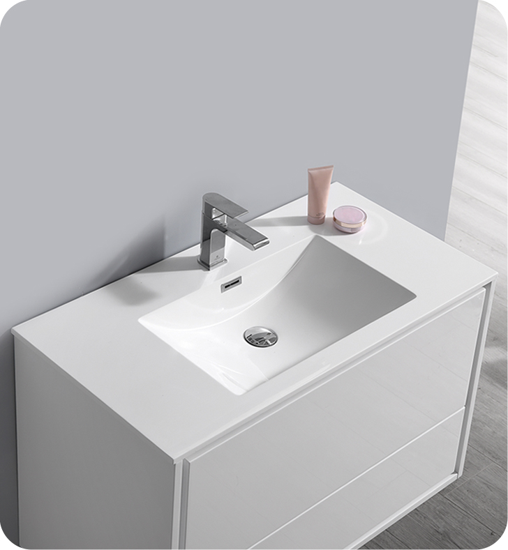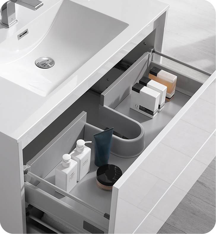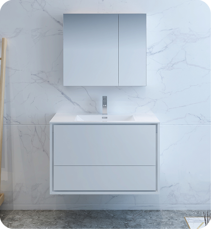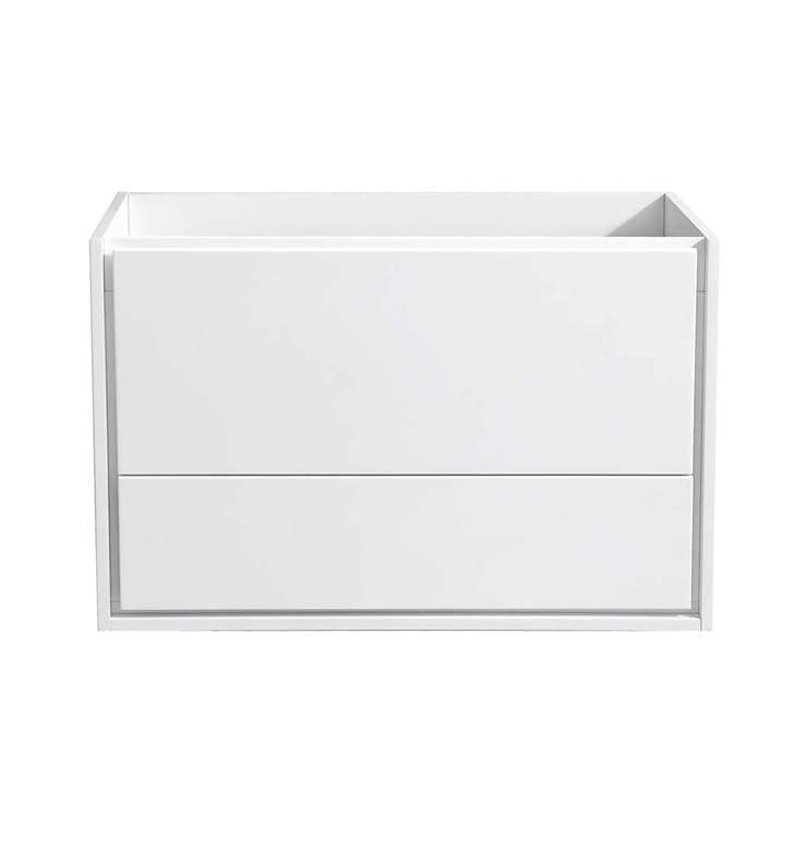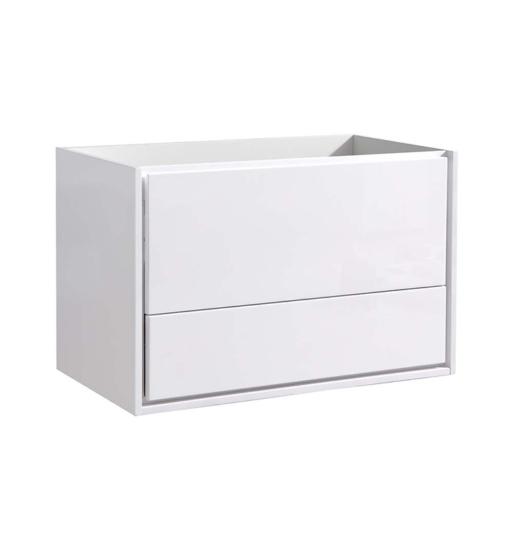 Transform the look of your bathroom with this contemporary Fresca Catania White Wall Hung Modern bathroom cabinet. The chic urban design is just perfect for enhancing any décor scheme. With clean lines and trendy push-release metal frame drawers, this rectangular cabinet has a bold White finish. It will inject instant style and elegance into any space.