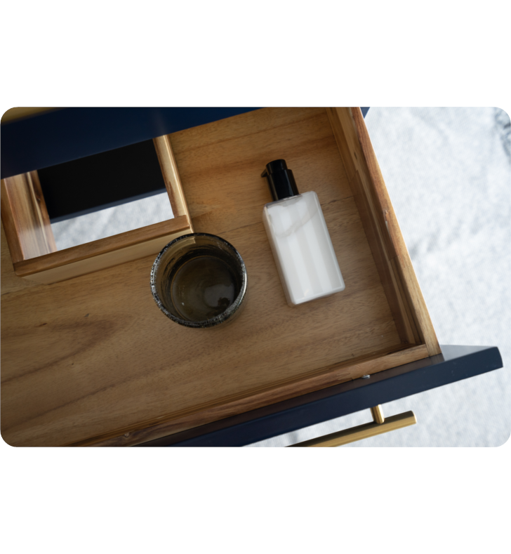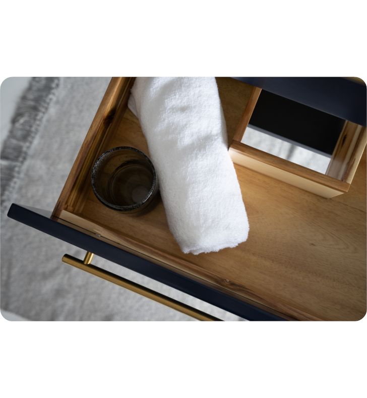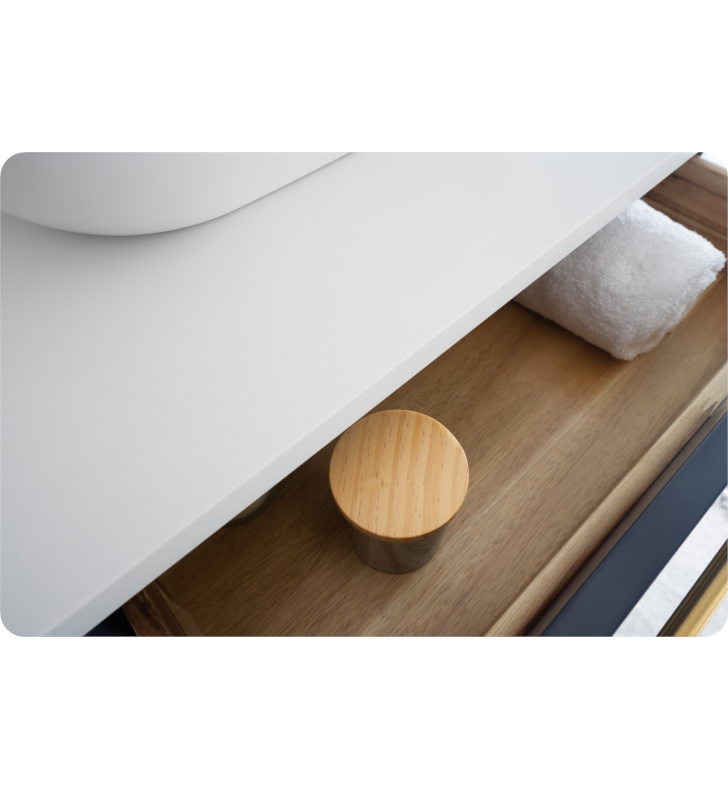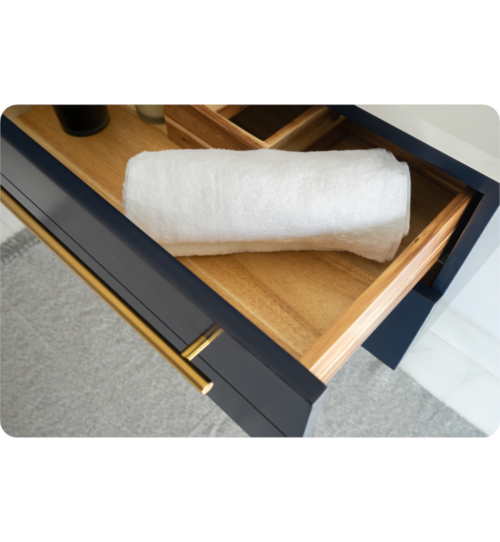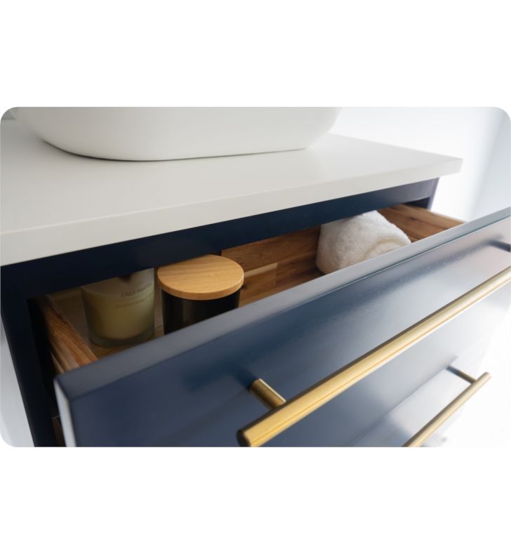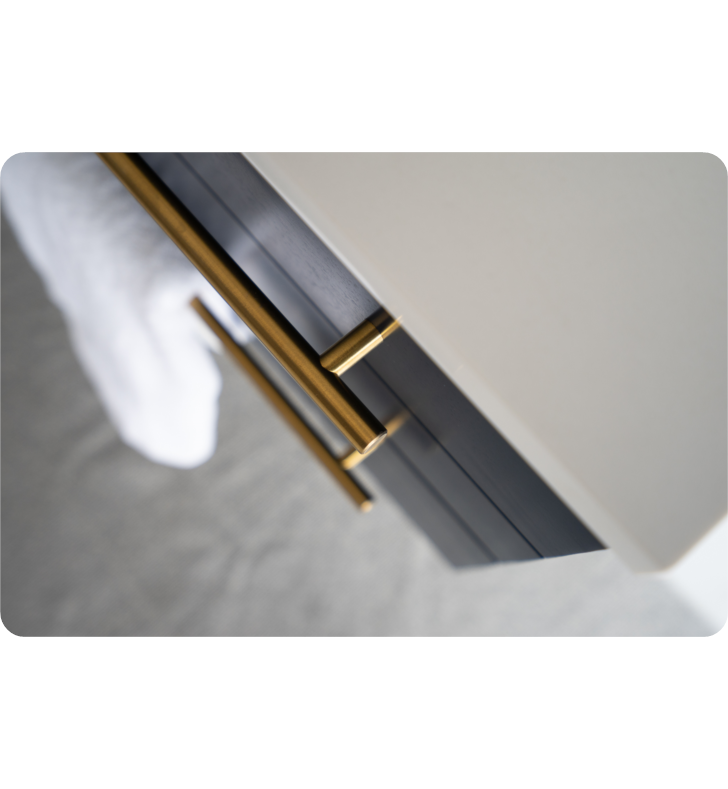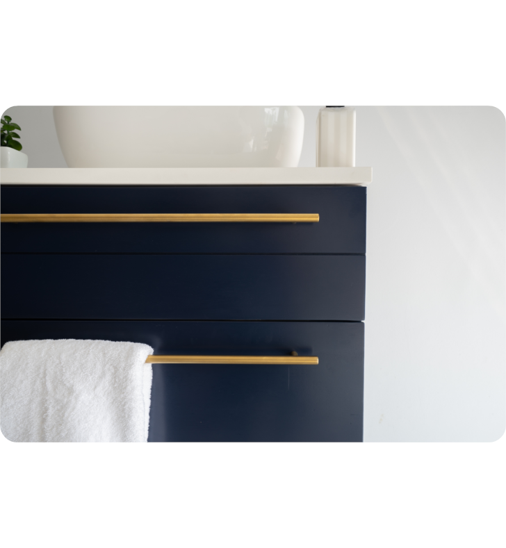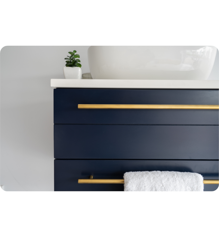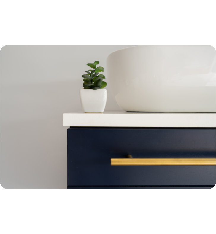 - Wall mount vanity design offers a floating, streamlined appearance and easy cleaning underneath