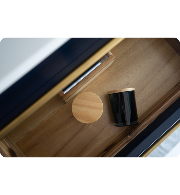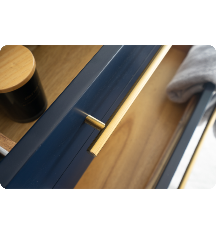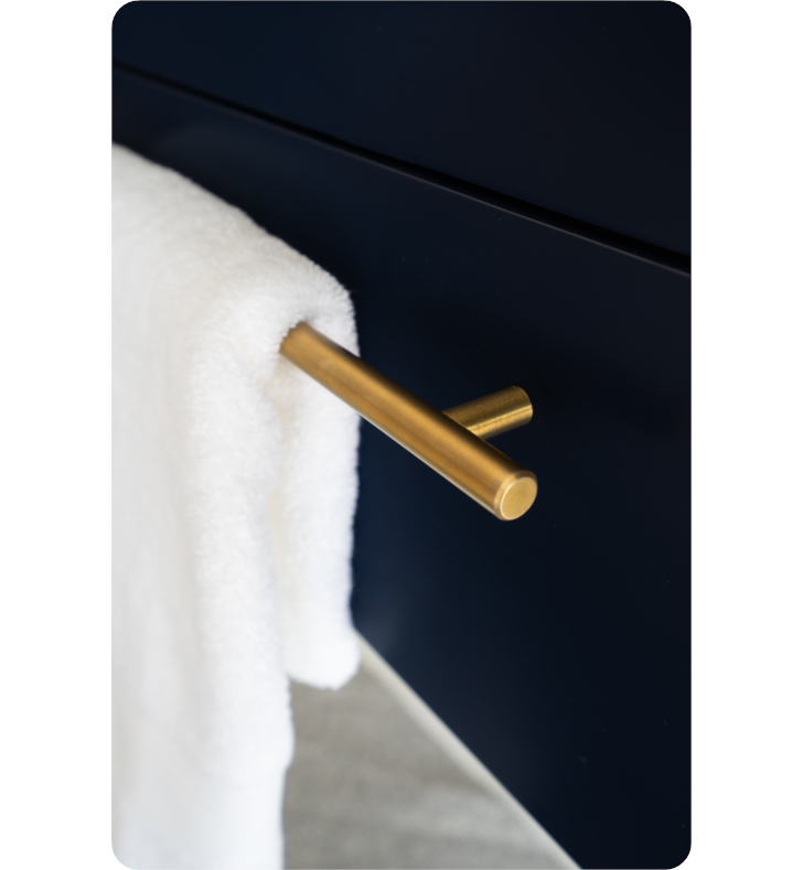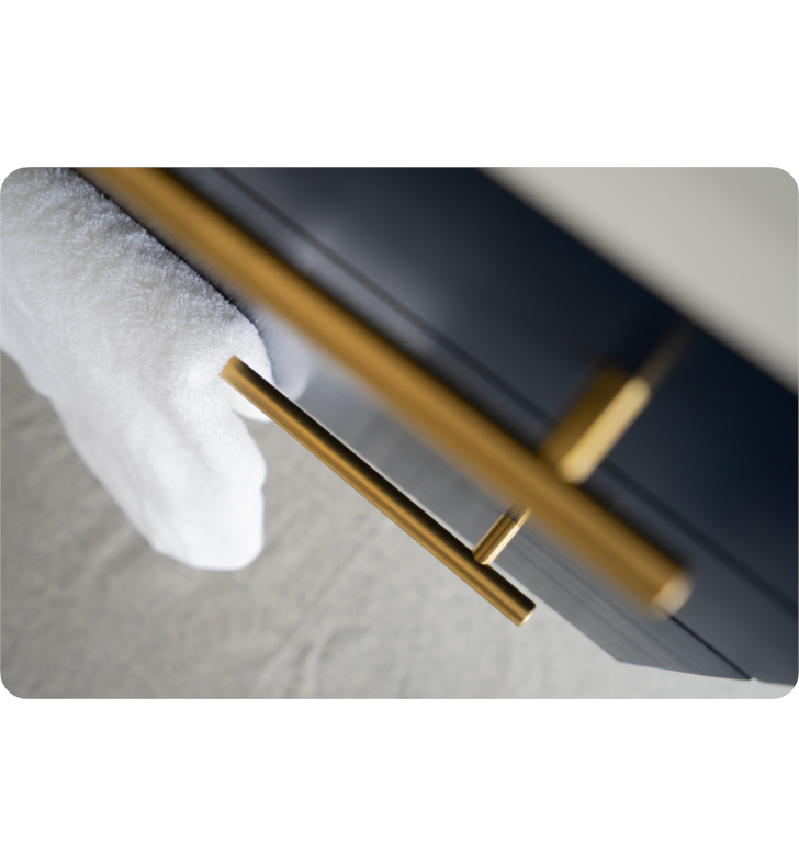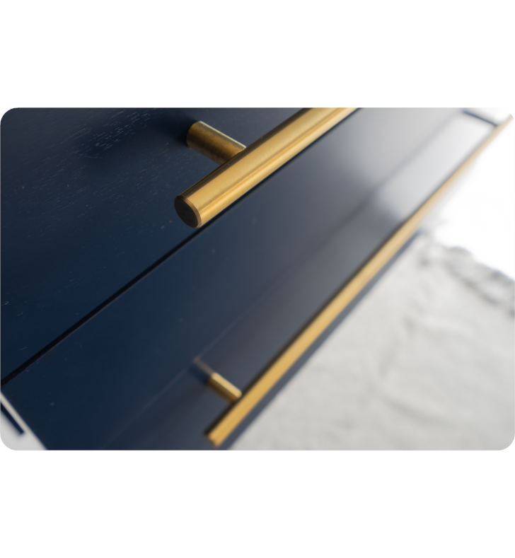 - Oversized hardware and beveled front detail add a modern, striking touch
