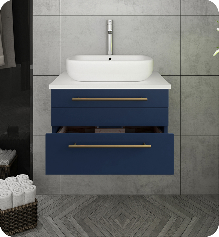 Expand your bathroom's functionality with the Fresca Lucera 24" Wall Mount Vanity, designed to provide more counter space and ample storage. This modern wall mount vanity features spacious lower drawers, perfect for storing towels, taller toiletry bottles, and other essentials. The extra countertop space allows you to spread out and get ready with ease, while the sleek, contemporary design creates an uncluttered, minimalist look that enhances any bathroom. Features two drawers for streamlined storage.