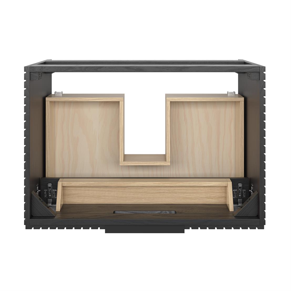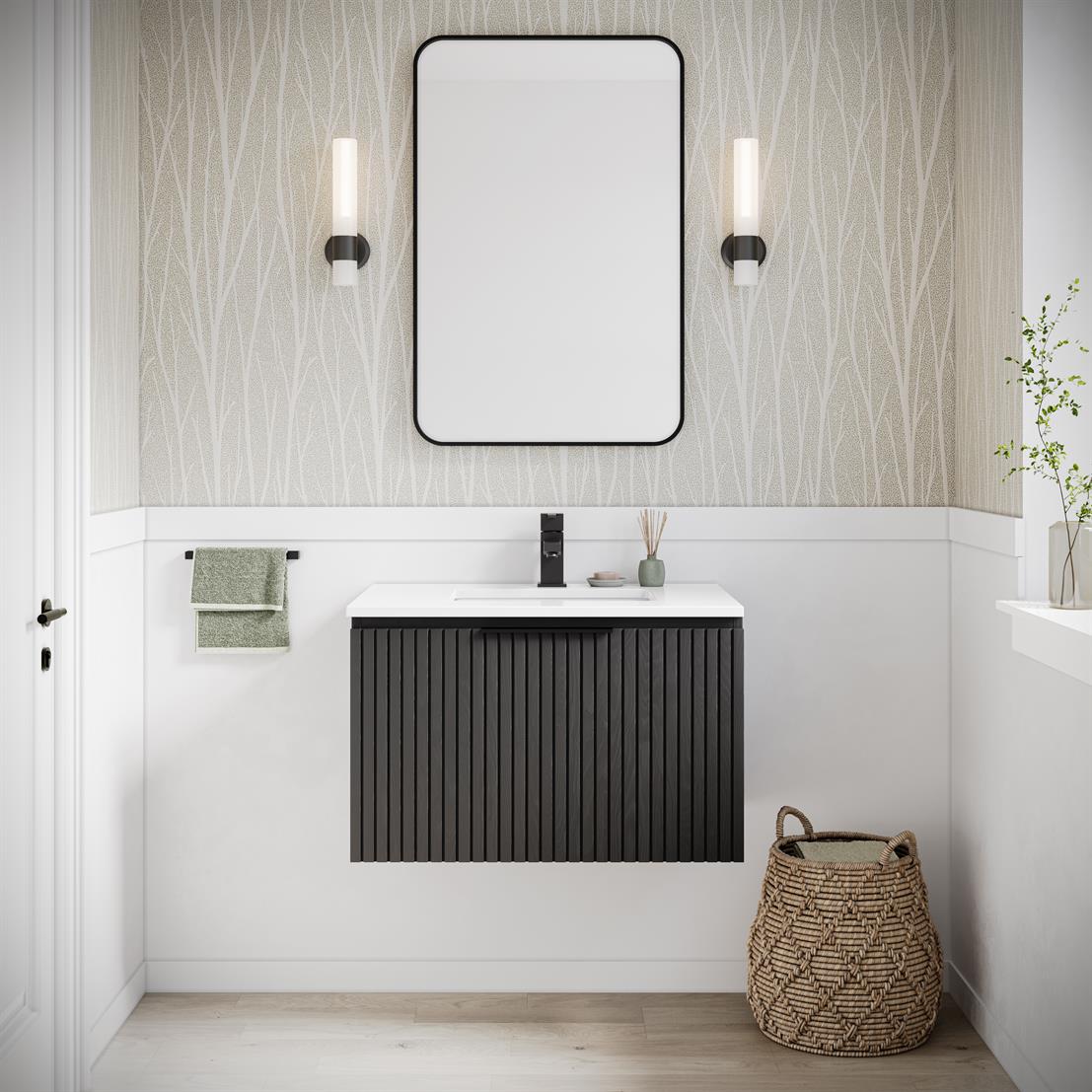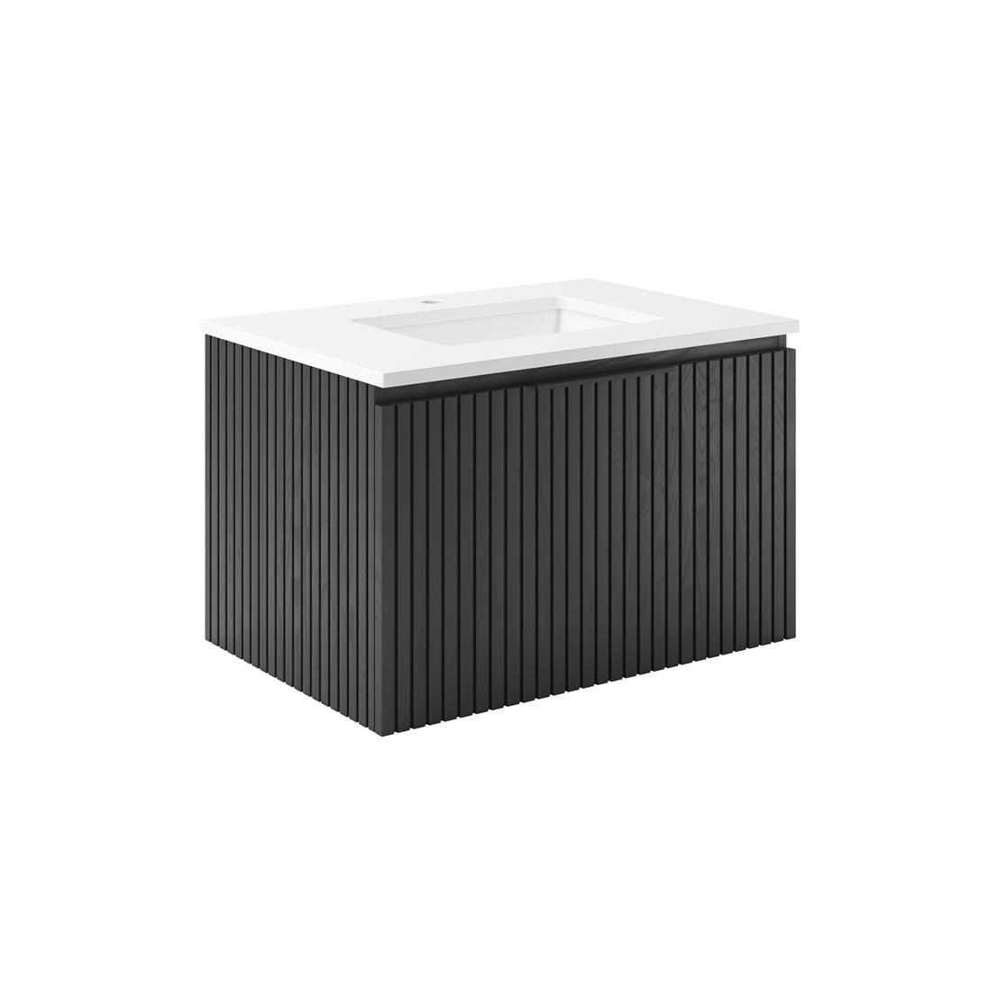 Introducing the Elliot Collection, where modern design meets timeless sophistication. This floating vanity is expertly crafted with a solid wood frame and adorned with a durable white oak veneer that showcases captivating wood graining. The front and sides are detailed with square fluting, adding a layer of texture that enhances its contemporary appeal.