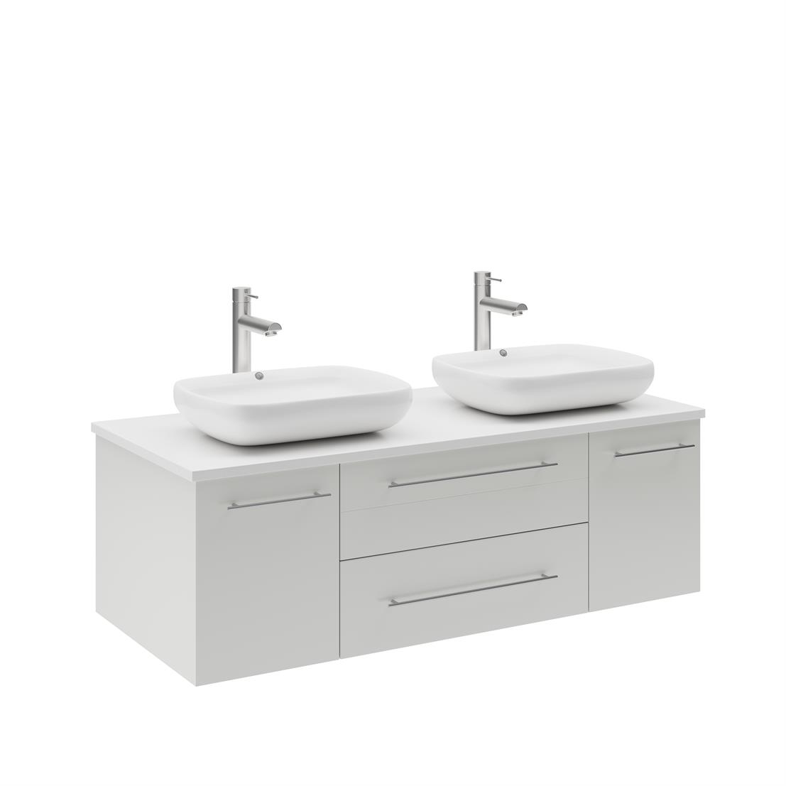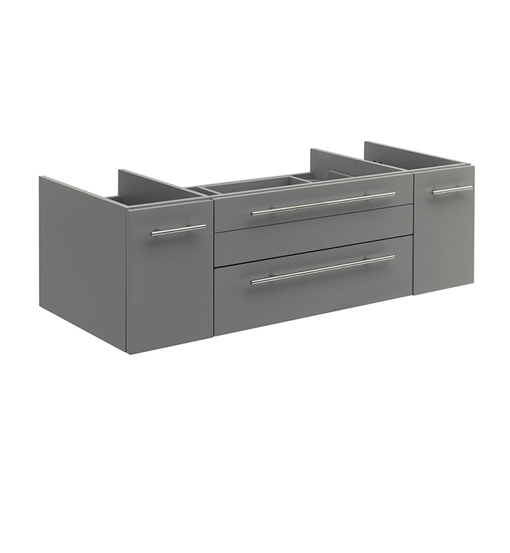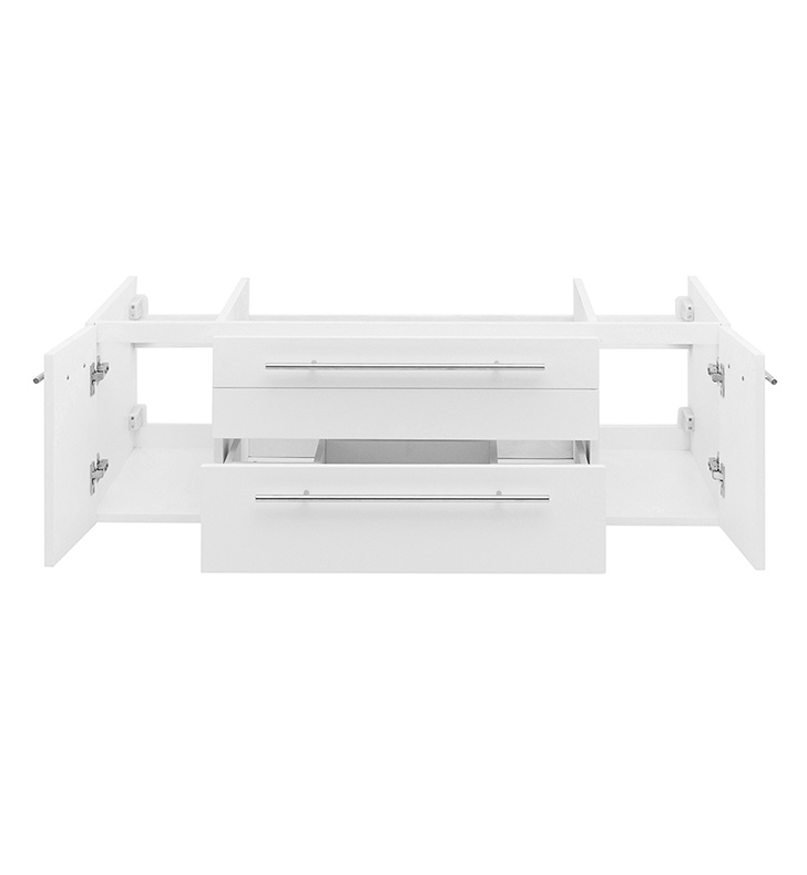 Expand your bathroom's functionality with the Fresca Lucera 48" Wall Mount Vanity, designed to provide more counter space and ample storage. This modern wall mount vanity features two spacious lowers drawer and an additional side cabinet, perfect for storing towels, taller toiletry bottles, and other essentials. The extra countertop space allows you to spread out and get ready with ease, while the sleek, contemporary design creates an uncluttered, minimalist look that enhances any bathroom. Features dual soft-close drawers and side cabinets for comprehensive storage.