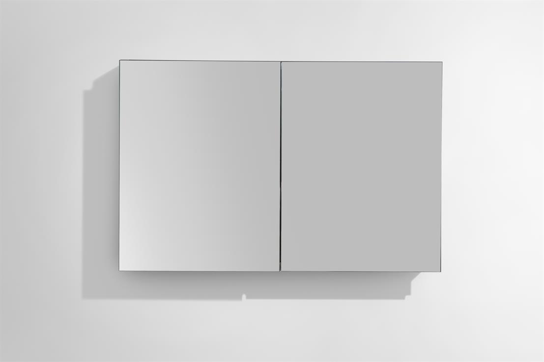 - Fully mirrored exterior enhances light and visual space in the bathroom.