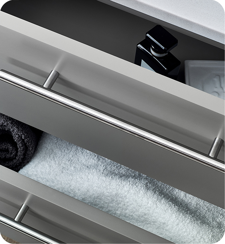 Expand your bathroom's functionality with the Fresca Lucera 24" Wall Mount Vanity, designed to provide more counter space and ample storage. This modern wall mount vanity features spacious lower drawers, perfect for storing towels, taller toiletry bottles, and other essentials. The extra countertop space allows you to spread out and get ready with ease, while the sleek, contemporary design creates an uncluttered, minimalist look that enhances any bathroom. Features two drawers for streamlined storage.