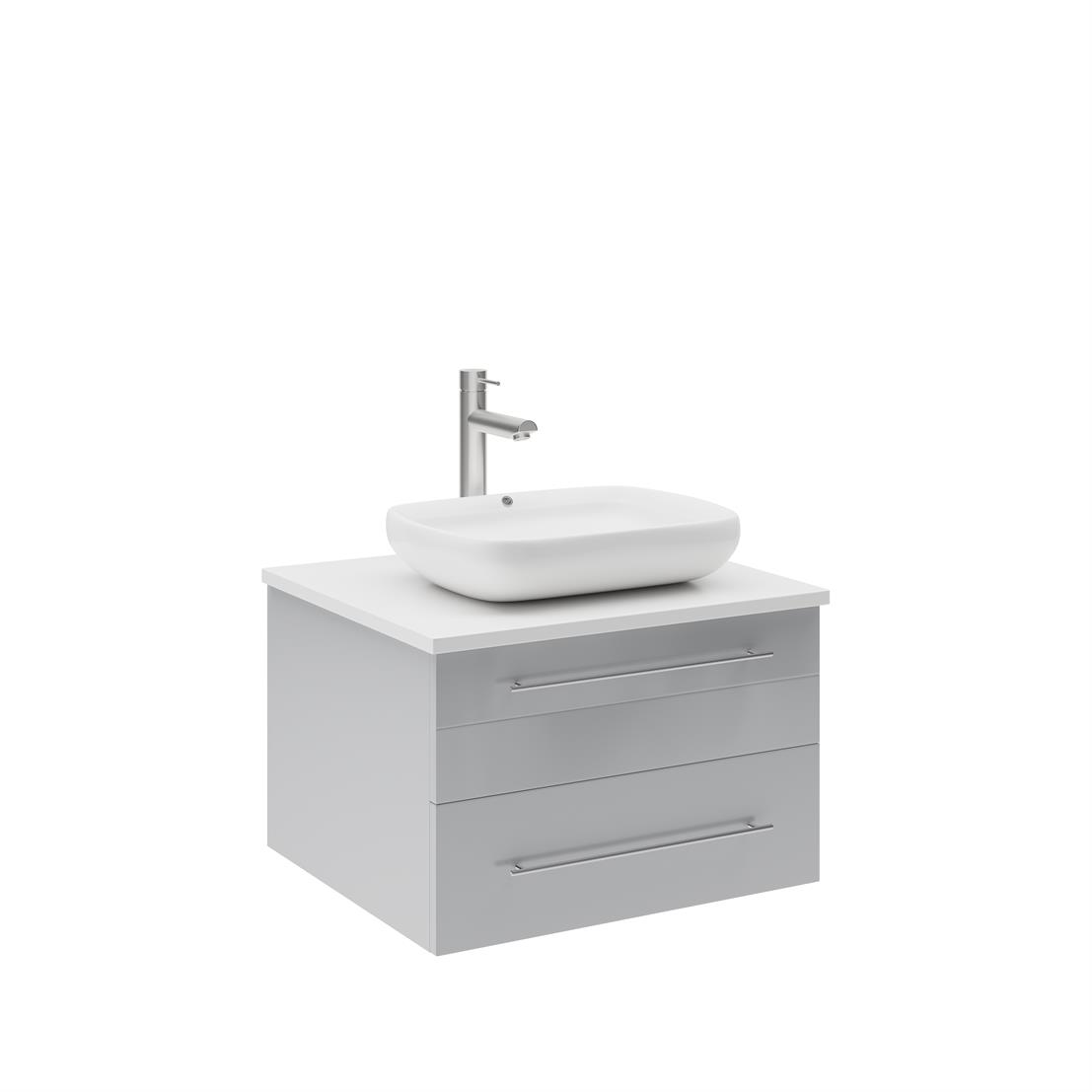 - Includes a vessel sink and a countertop, pre-drilled for your choice of faucet (faucet sold separately)